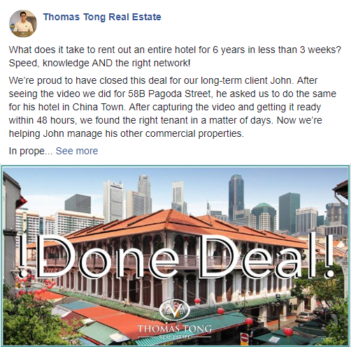 The campaign had over 250,000 impressions and close to 65,000 video views. In the months that followed, Thomas became one of the top 10% real estate agents in Singapore and he is now producing real estate videos not only for Singapore but also London and Bangkok.